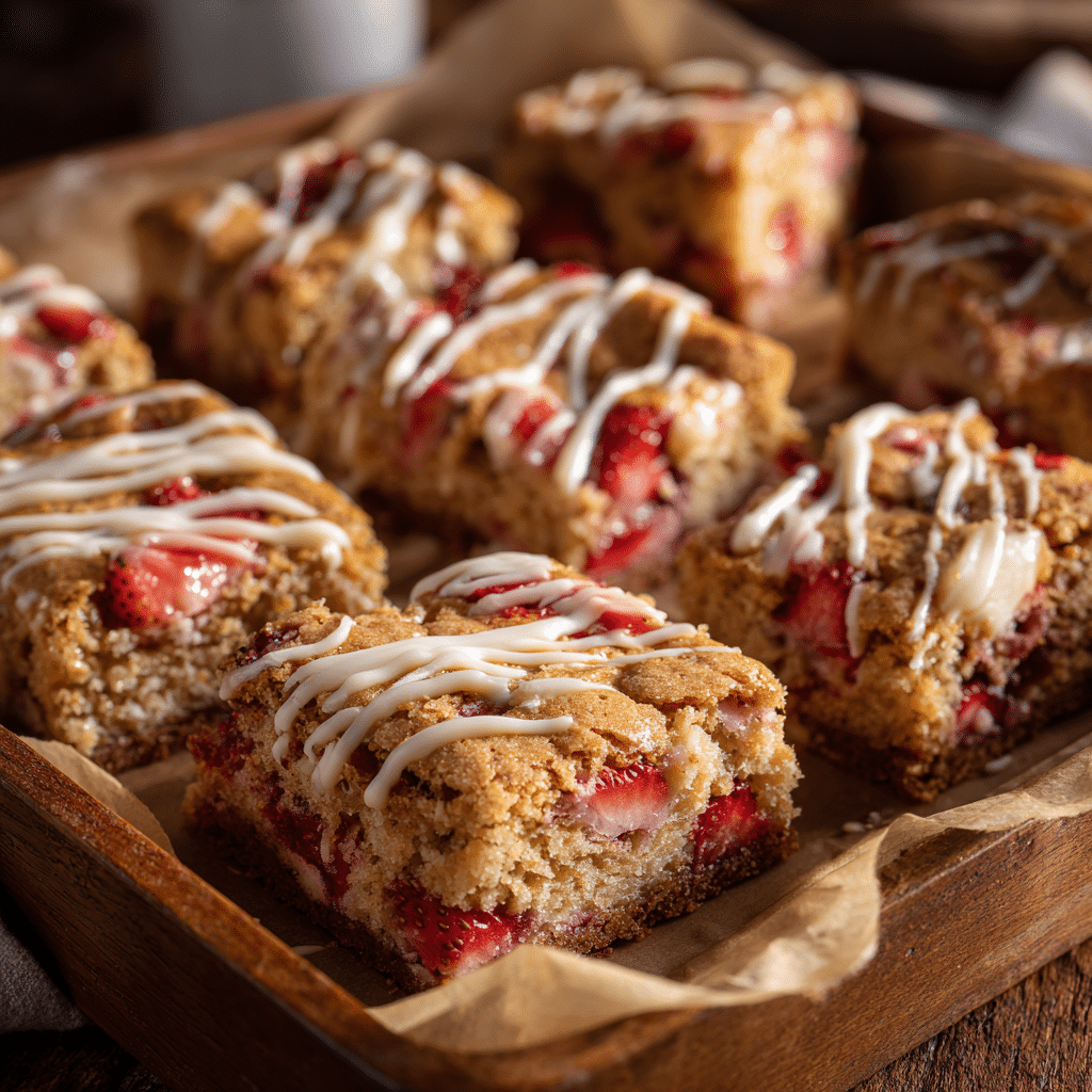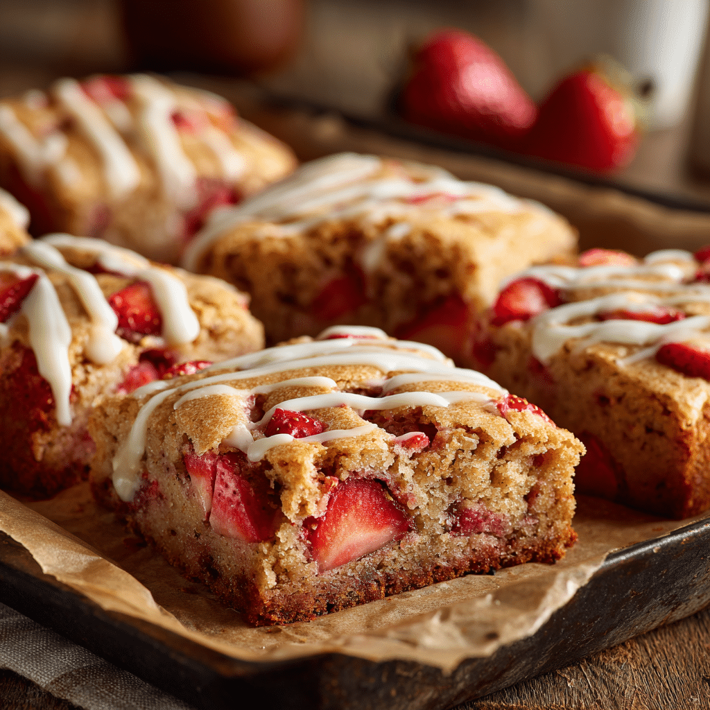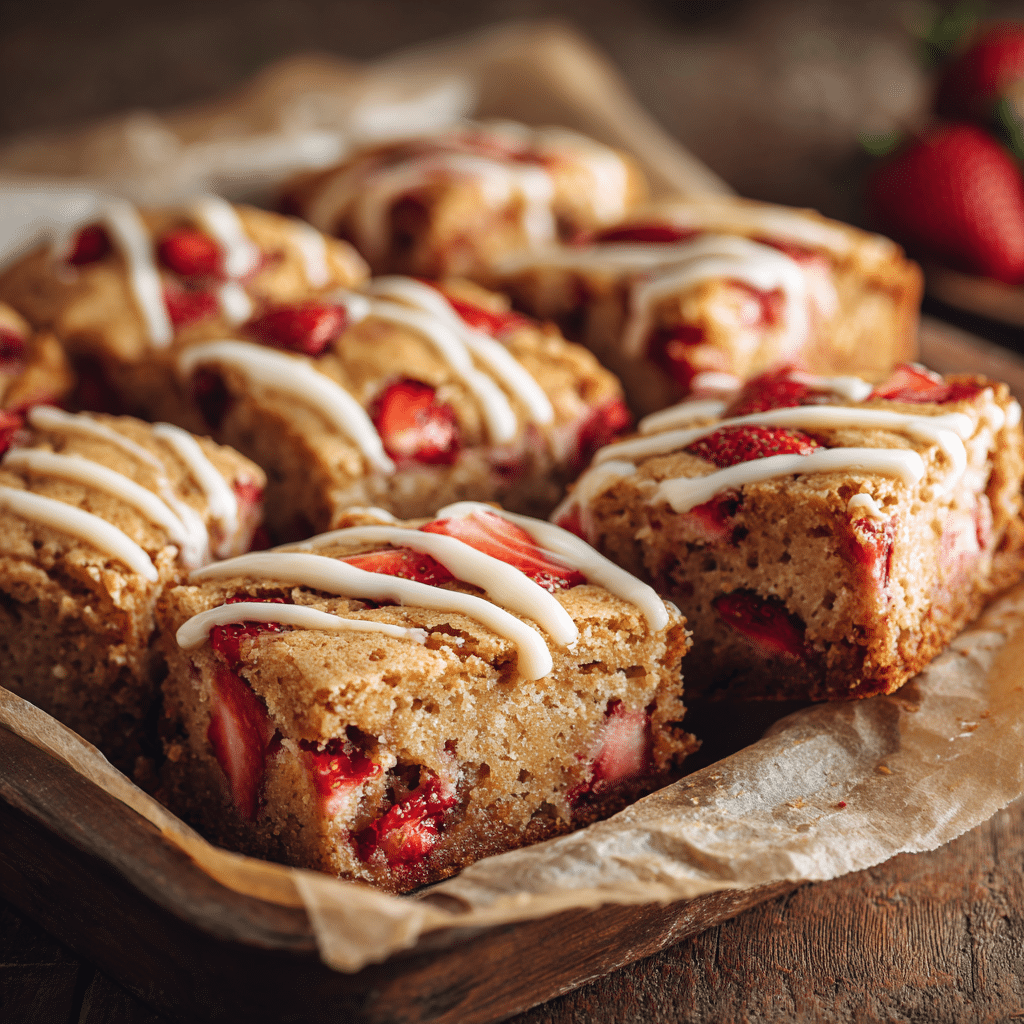 Ever since I was a little girl, baking has been my happy place. I remember my grandmother’s tiny kitchen, sunlight streaming through the window, and the smell of sugar and butter wafting through the air. One spring afternoon, we tried adding fresh strawberries to a classic blondie recipe, and that sweet, fruity twist completely stole my heart. Today, I want to share my version of Strawberry Blondies a treat that’s soft, chewy, and bursting with strawberry goodness. These blondies are perfect for family gatherings, afternoon tea, or just a cozy snack with a cup of tea.