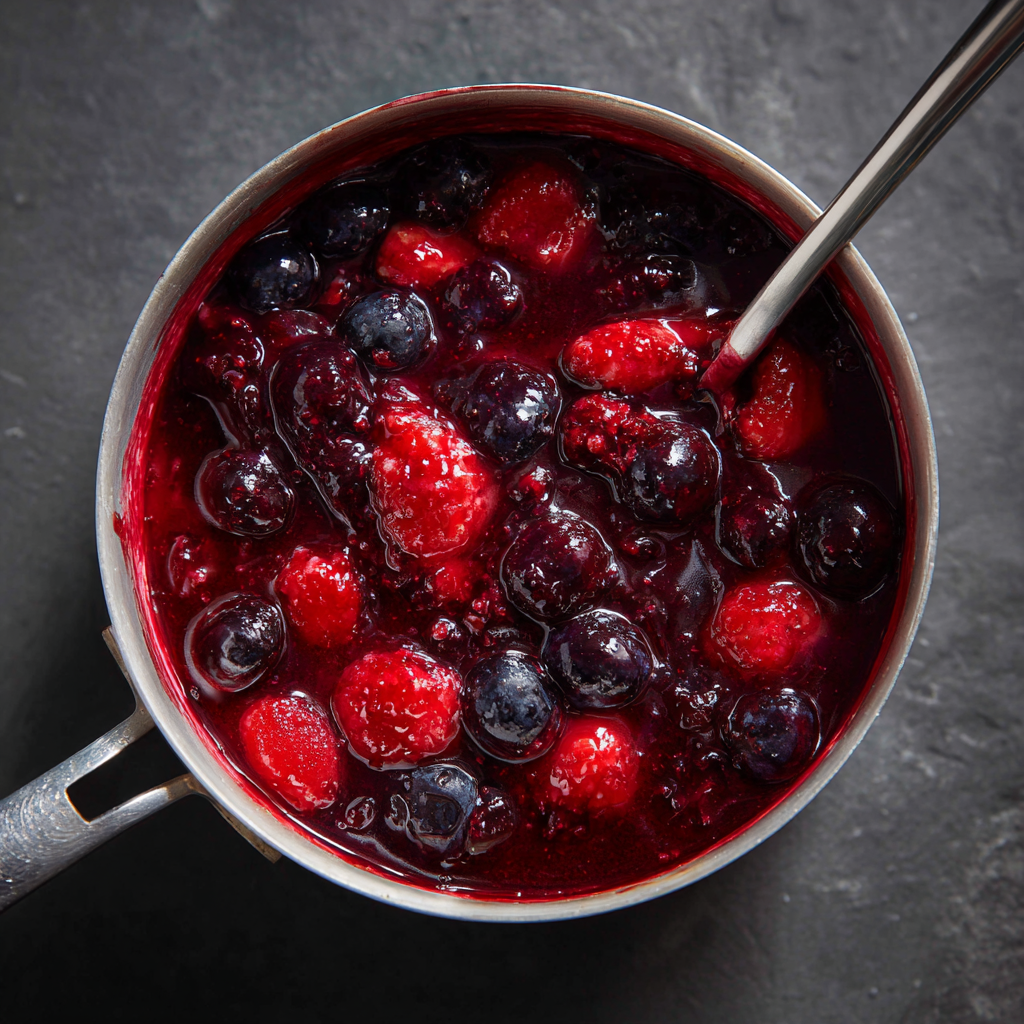 - Add mixed berries, sugar, cornstarch, and water to a small saucepan.