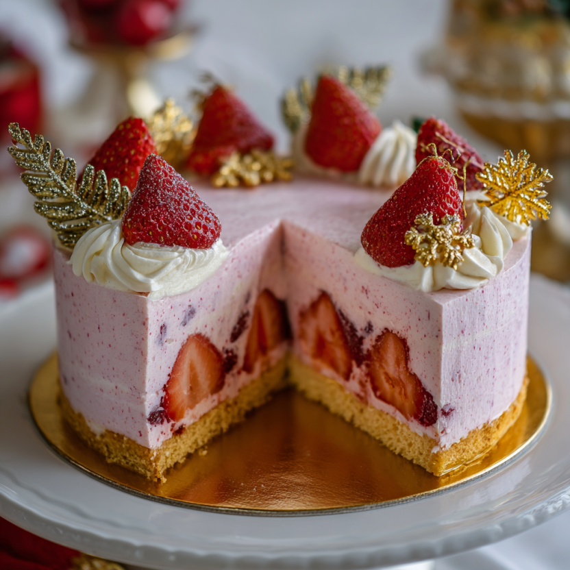 Every time I prepare it, I feel connected to the women in my family. My grandmother taught me that cooking is about closeness sharing warmth, laughter, and even the occasional kitchen disaster. And this dessert? It brings people together instantly. Whether you’re serving it at a Christmas dinner, gifting it to friends, or enjoying it with a cup of tea by the tree, this Christmas Strawberry Mousse Cake delivers sweetness and joy in every bite.
