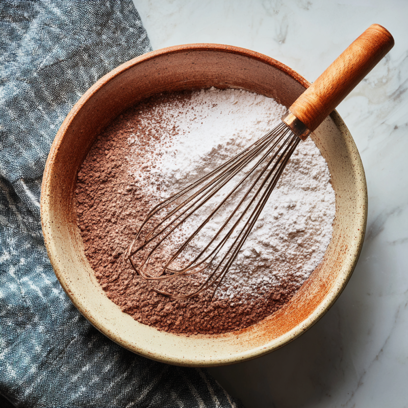 In a medium bowl, whisk together the flour, cocoa powder, baking soda, and salt. Set this aside so it’s ready when you need it.
