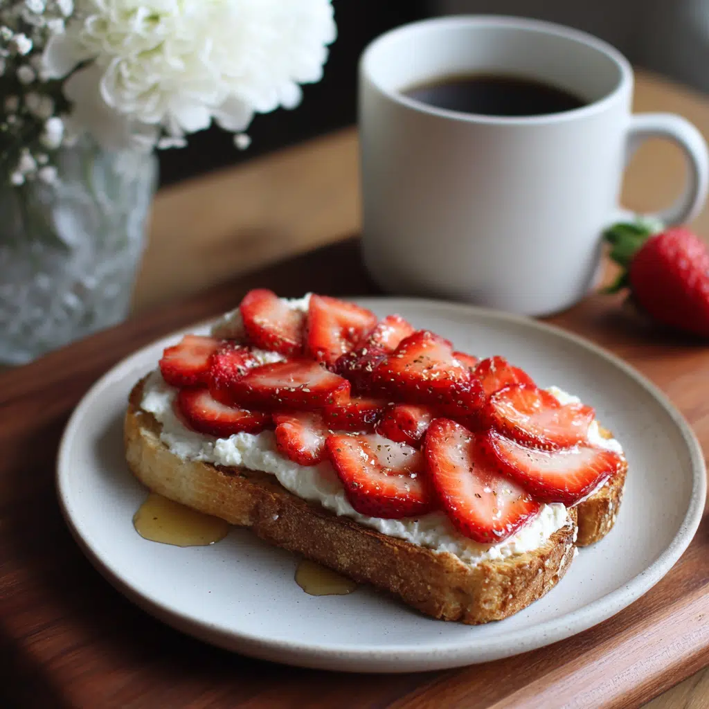 🛒 Ingredients <ul> <li>4 slices of fresh sourdough bread</li> <li>½ cup whole-milk ricotta cheese</li> <li>1 cup fresh strawberries, hulled and sliced</li> <li>1–2 tablespoons honey</li> <li>½ teaspoon vanilla extract (optional)</li> <li>A pinch of sea salt</li> <li>Fresh mint leaves, for garnish (optional)</li> <li>A sprinkle of toasted almonds or granola (optional)</li> </ul>