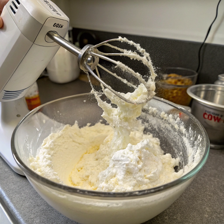 You’ll know it’s ready when you lift the beaters, and the cream stands tall without falling. Keep it chilled until ready to pipe.