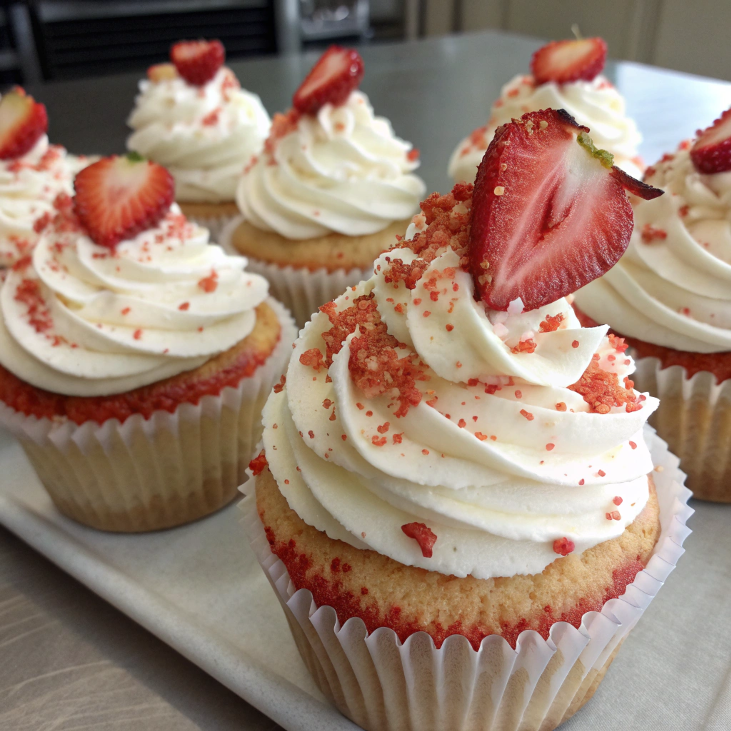 As the cupcakes bake, your kitchen will fill with the buttery aroma of strawberries the kind that makes everyone peek into the oven asking, “Are they ready yet?”