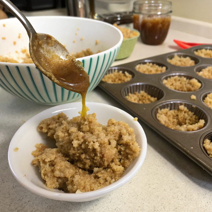 In a bowl, mix the crushed cookies with melted vegan butter and maple syrup until it resembles wet sand.