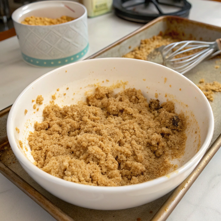 In a medium bowl, mix crushed cookies with melted butter and sugar. Stir until the texture resembles wet sand. Spread onto a baking sheet and toast at 350°F (175°C) for 5 minutes, or until lightly golden. (You can skip this step for a no-bake version.)