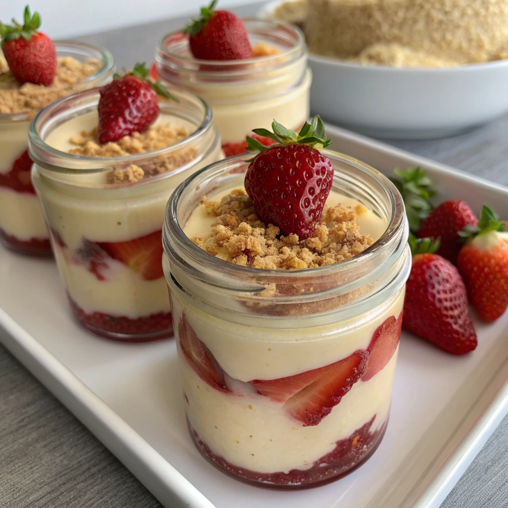 Every layer tells a story: crumbly golden biscuits for warmth, creamy pudding for comfort, and juicy strawberries for sweetness. Whether you’re hosting a garden brunch, prepping make-ahead desserts for a party, or just craving something sweet after dinner, these little jars are as delightful to look at as they are to eat.