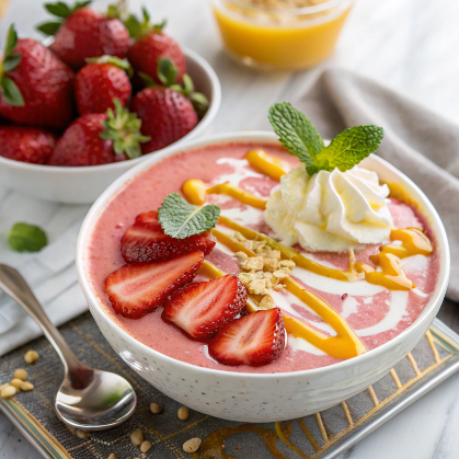 Serve it with a spoon and a smile this bowl is more than breakfast; it’s an experience. It’s bright, refreshing, and feels like a treat straight from your favorite café. I love serving it in chilled bowls and topping it with extra strawberry slices and a drizzle of honey.