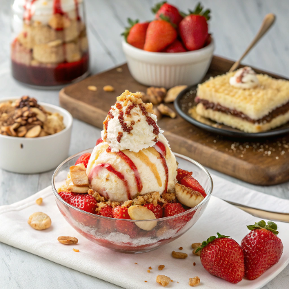 If you’re hosting a gathering, set up a DIY sundae bar guests can layer their own sundaes with extra toppings like chocolate drizzle, caramel sauce, or toasted almonds. It’s fun, interactive, and turns dessert time into a mini celebration.