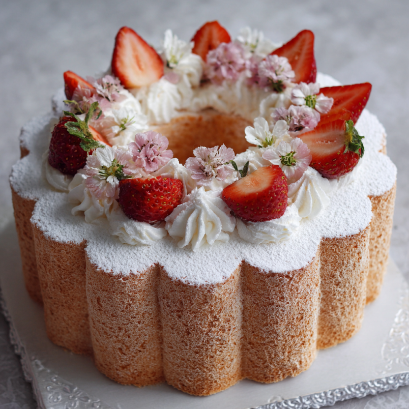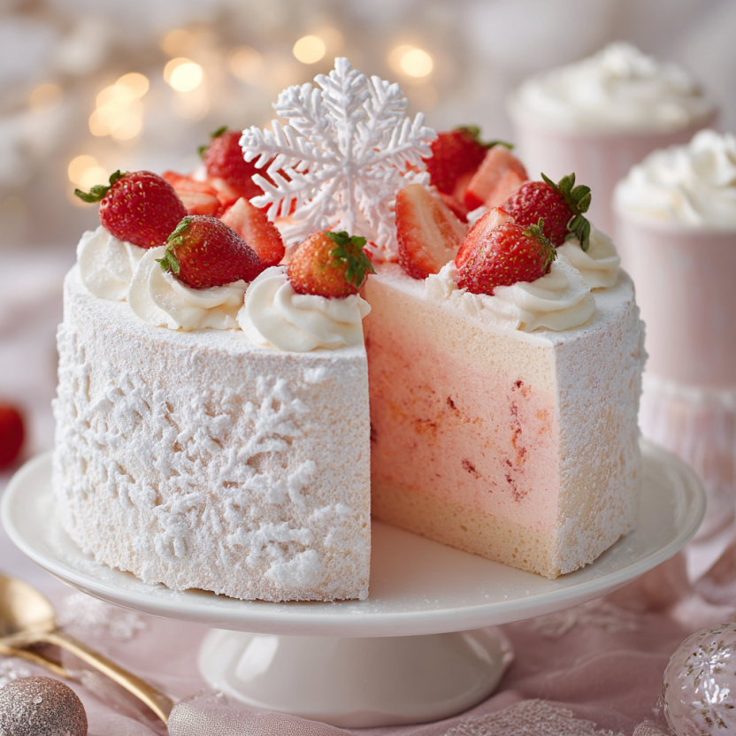 This Strawberry Snowflake Chiffon Cake is light, fluffy, and filled with fresh strawberry flavor. Made with airy chiffon layers and topped with a snowy meringue finish, it’s the perfect dessert when you want something elegant but not heavy. The whipped egg whites create a soft, cloud-like texture, while the strawberries add natural sweetness. Finished with fresh berries and powdered sugar, this cake looks beautiful on any table. It’s easy to make, visually stunning, and perfect for celebrations or a cozy afternoon treat.