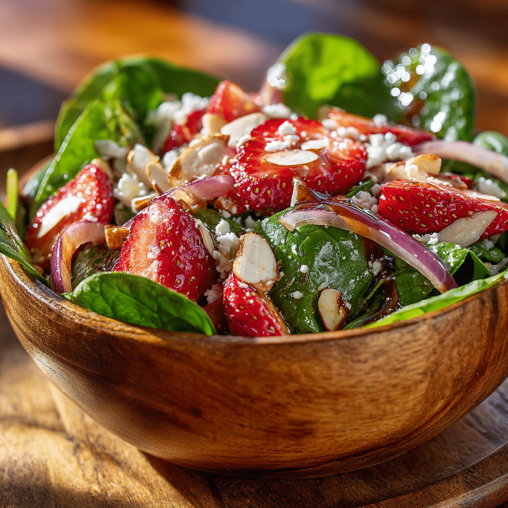 Fresh, vibrant, and full of love, my Strawberry Spinach Salad with Nuts is a delightful mix of sweet strawberries, tender spinach, crunchy toasted nuts, and tangy feta. Tossed with a balsamic vinaigrette, it’s perfect for family lunches, light dinners, or spring gatherings. Toasting the nuts brings out their aroma, while a touch of honey enhances the strawberry sweetness. Quick to make and endlessly versatile, this salad captures the essence of fresh ingredients and warm memories. Serve it alone or with grilled chicken for a refreshing, satisfying meal that always brings a smile to the table.