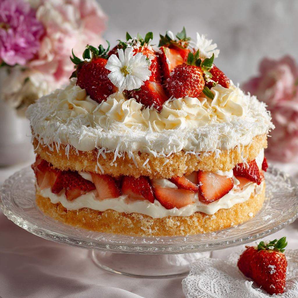 🍓 Recipe Card: Strawberry White Forest Cake