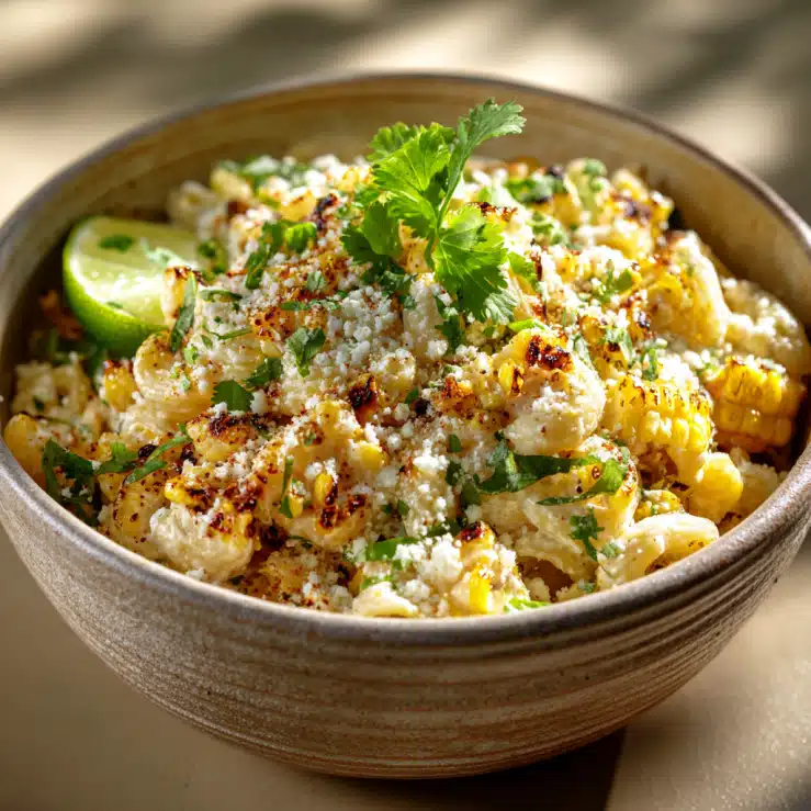 This Street Corn Pasta Salad with Grilled Corn and Jalapeño is creamy, smoky, and full of summer flavour. I combine tender pasta, charred corn, fresh herbs, and a zesty lime dressing for a comforting yet vibrant dish. It’s perfect for barbecues, picnics, or simple family dinners. I love how easy it is to make ahead and how it brings people together around the table. One bite always feels like sunshine and shared laughter.