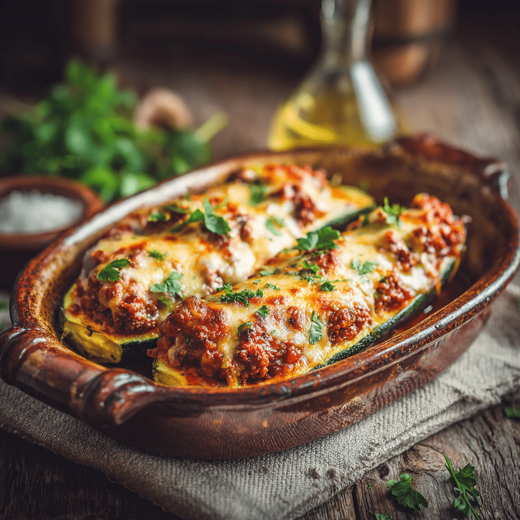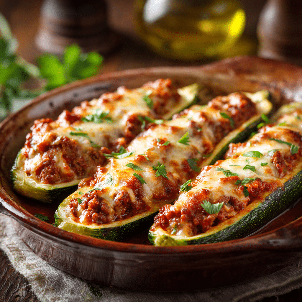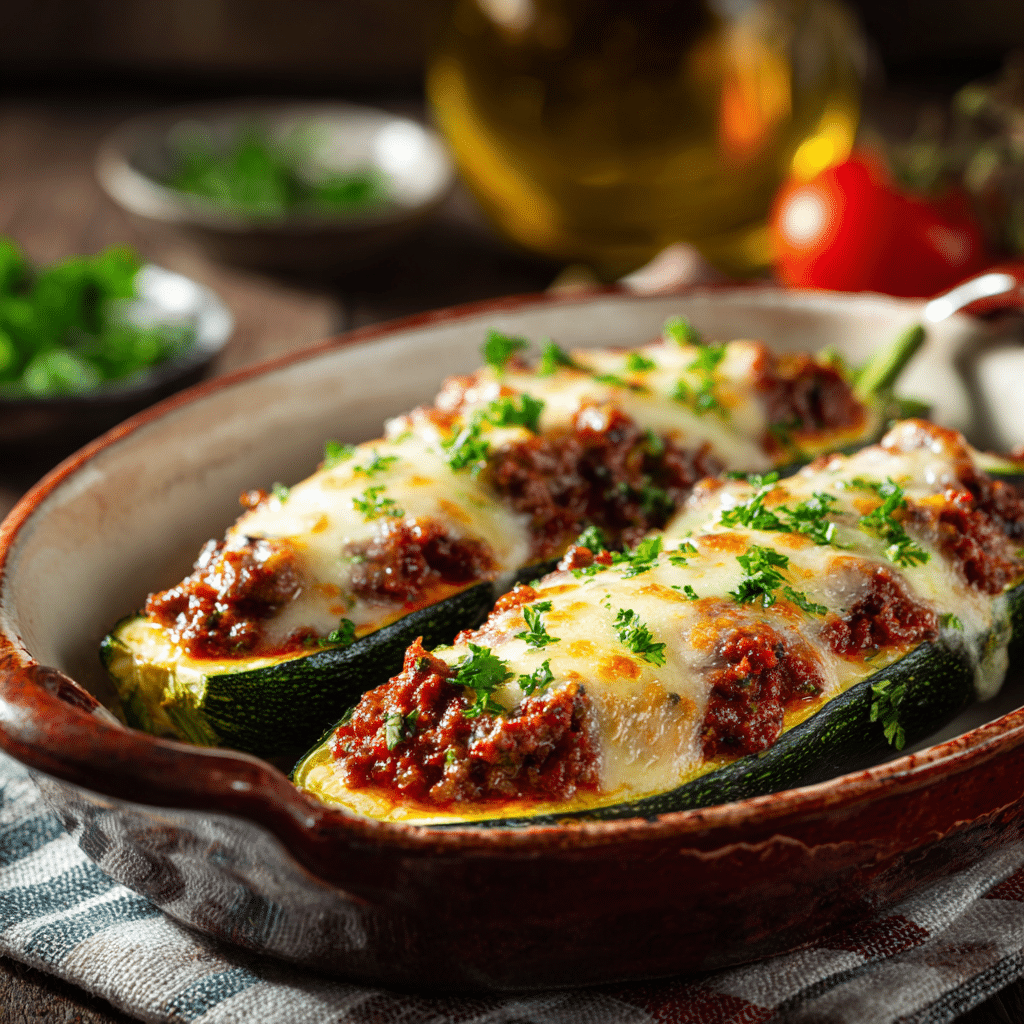 These stuffed zucchini boats are a comforting and healthy dinner option filled with savory ground meat, rich tomato sauce, and melted cheese. Perfect for busy weeknights, this easy recipe delivers bold flavor in every bite while staying light and nutritious.
