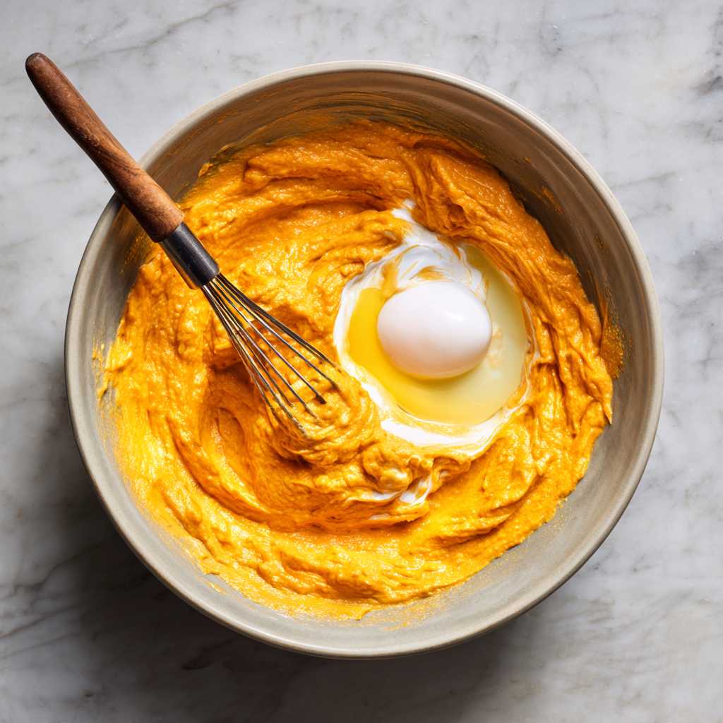 In a separate bowl, beat egg whites until stiff peaks form. Gently fold the egg whites into the sweet potato mixture, being careful not to deflate the batter.
