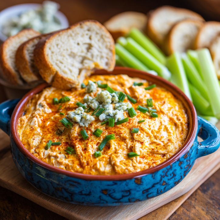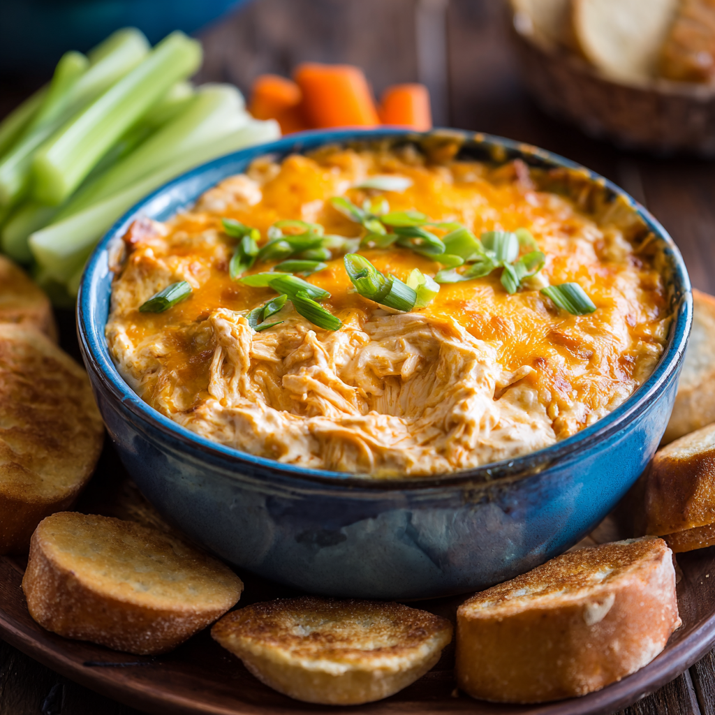 This Thick and Cheesy Slow Cooker Buffalo Chicken Dip is the ultimate comfort food for family and friends. Shredded chicken, cream cheese, ranch dressing, cheddar, mozzarella, and tangy buffalo sauce create a creamy, irresistible dip that’s perfect for parties, game nights, or cozy nights in. Made in the slow cooker, it’s effortless and hands-off. I love topping it with green onions for color and serving it with chips, veggies, or toasted baguette slices. It’s warming, cheesy, and full of flavor a dip that brings people together and leaves everyone smiling.