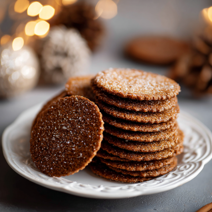 I love making these thin crispy gingerbread cookies because they remind me of the joy of learning, the fun mess in the kitchen, and especially how food can bring people together. Every December, the women in my family gather around my kitchen island flour everywhere, laughter echoing through the house and we bake tray after tray of these beautifully spiced cookies. They’re simple, light, and full of warm flavors that make the whole house smell like comfort.