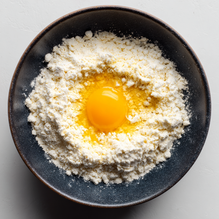 Start by combining the flour, sugar, and salt in a bowl. Add the cold butter and gently work it into the flour until the mixture looks like coarse crumbs. Stir in the egg yolk and just enough cold water to bring the dough together.