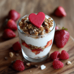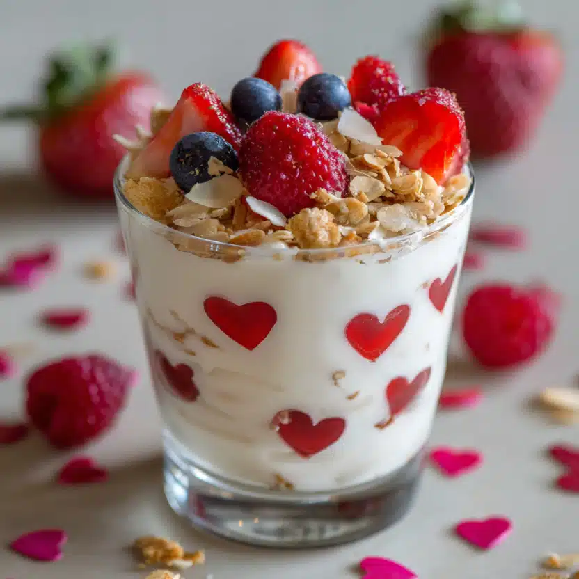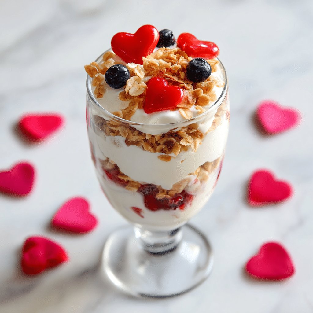 I love making this recipe because it’s one of those dishes that looks impressive but requires almost no effort. It’s fun for kids to help assemble, for friends to enjoy at brunch, or for a cozy solo treat with a cup of tea. The layers tell a story: the creamy yogurt represents comfort, the berries symbolize freshness, and the crunchy granola gives that satisfying texture that makes each spoonful a tiny celebration. Every Valentine’s, I find myself sneaking a bite before anyone else notices, grinning at the simple joy of creating something with love.