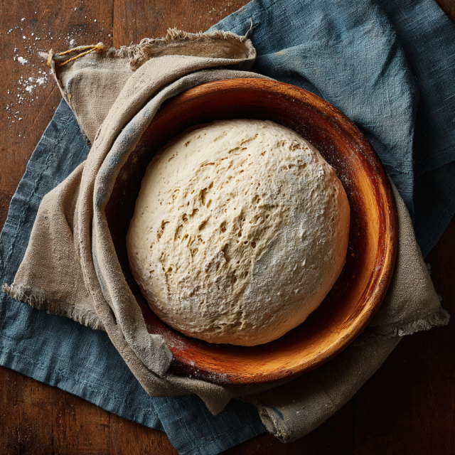 Cover the bowl with a kitchen towel and let it rest for 1 hour in a warm place. The dough should double in size and feel airy.