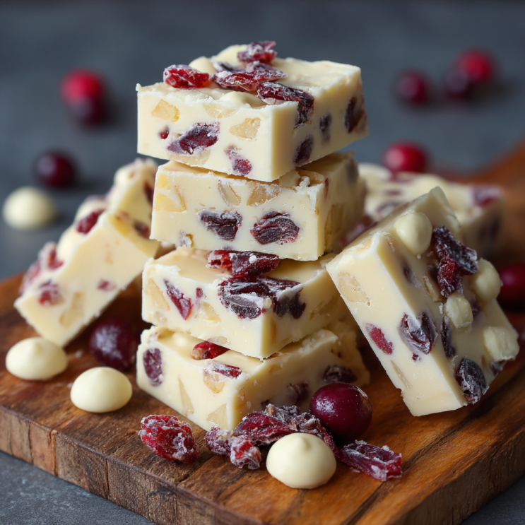 What I love most about White Chocolate Cranberry Fudge is how incredibly simple it is. No candy thermometers, no complicated steps… just creamy white chocolate, sweet condensed milk, and a burst of tart cranberries that brighten everything. The flavor reminds me of winter sunshine warm, sweet, and a little unexpected.