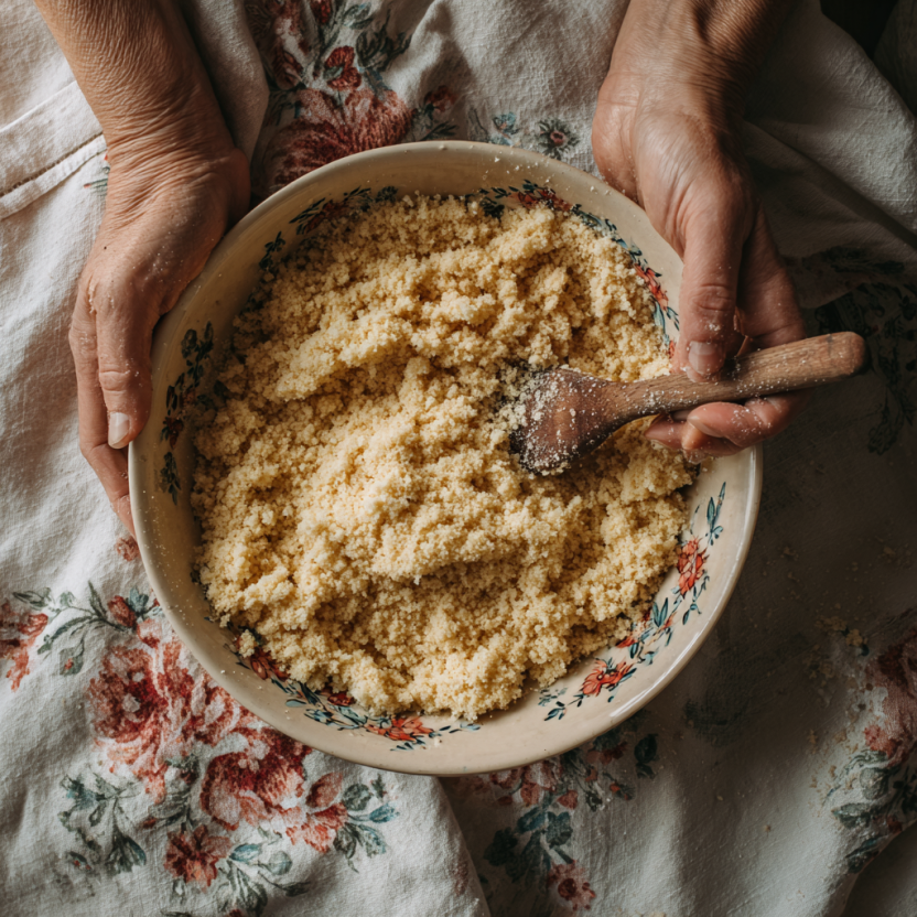 Once cooled, crumble the cake into fine crumbs using your hands. This is my favorite part it reminds me of helping my grandmother knead dough at the kitchen table.
