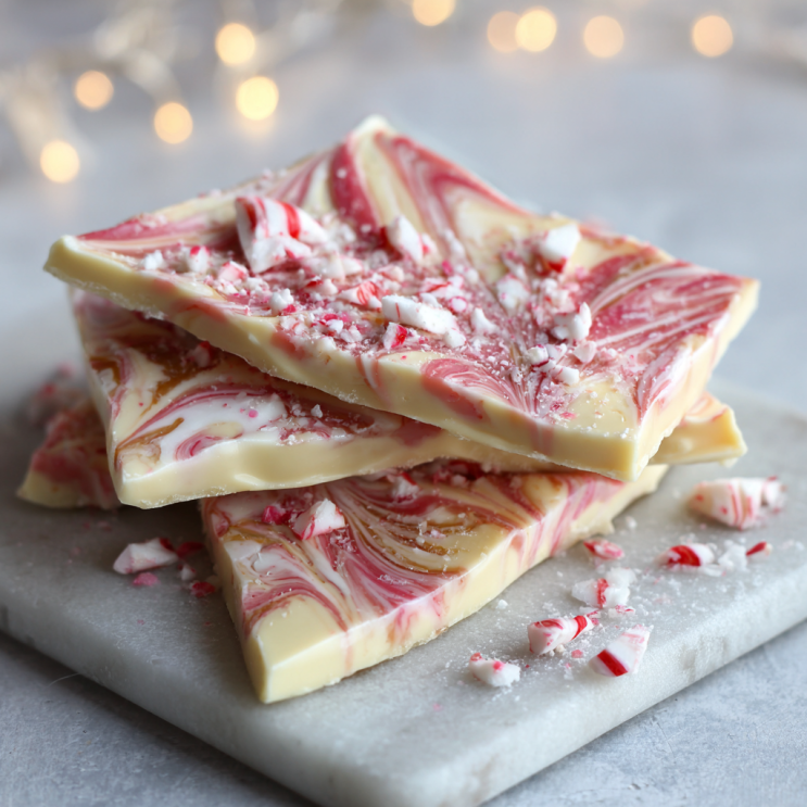 This recipe is the perfect blend of creamy white chocolate and cool peppermint, with gorgeous red swirls that make every piece look like a tiny holiday painting. I love melting the chocolate and watching the colors swirl together it’s calming and festive all at once. And because it breaks into rustic, imperfect pieces, there’s no pressure to make it look flawless. Even cracked corners have their charm.