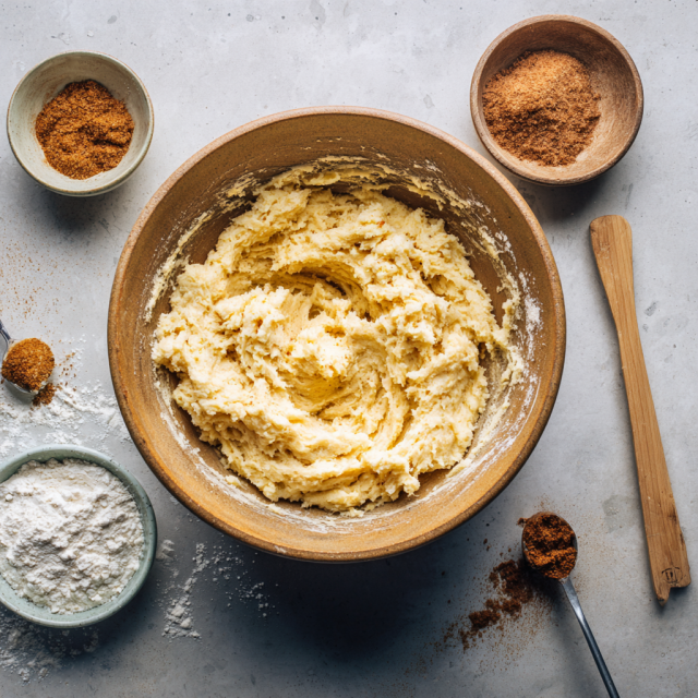 While the dough rises, mix the softened butter, coconut sugar, and cinnamon in a small bowl to create your sweet filling.